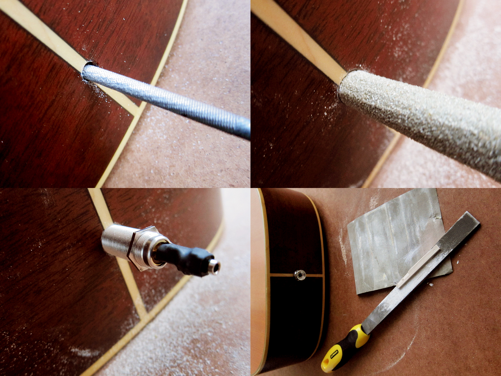 Instalar pastillas, entrada de jack o tope para correa en guitarras acústicas