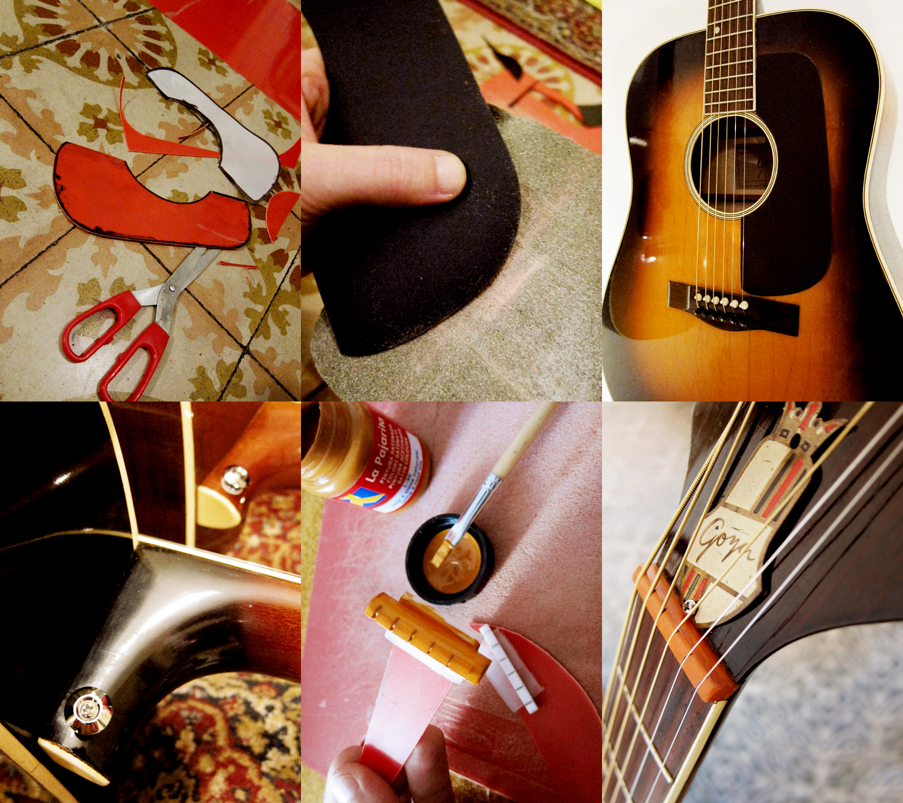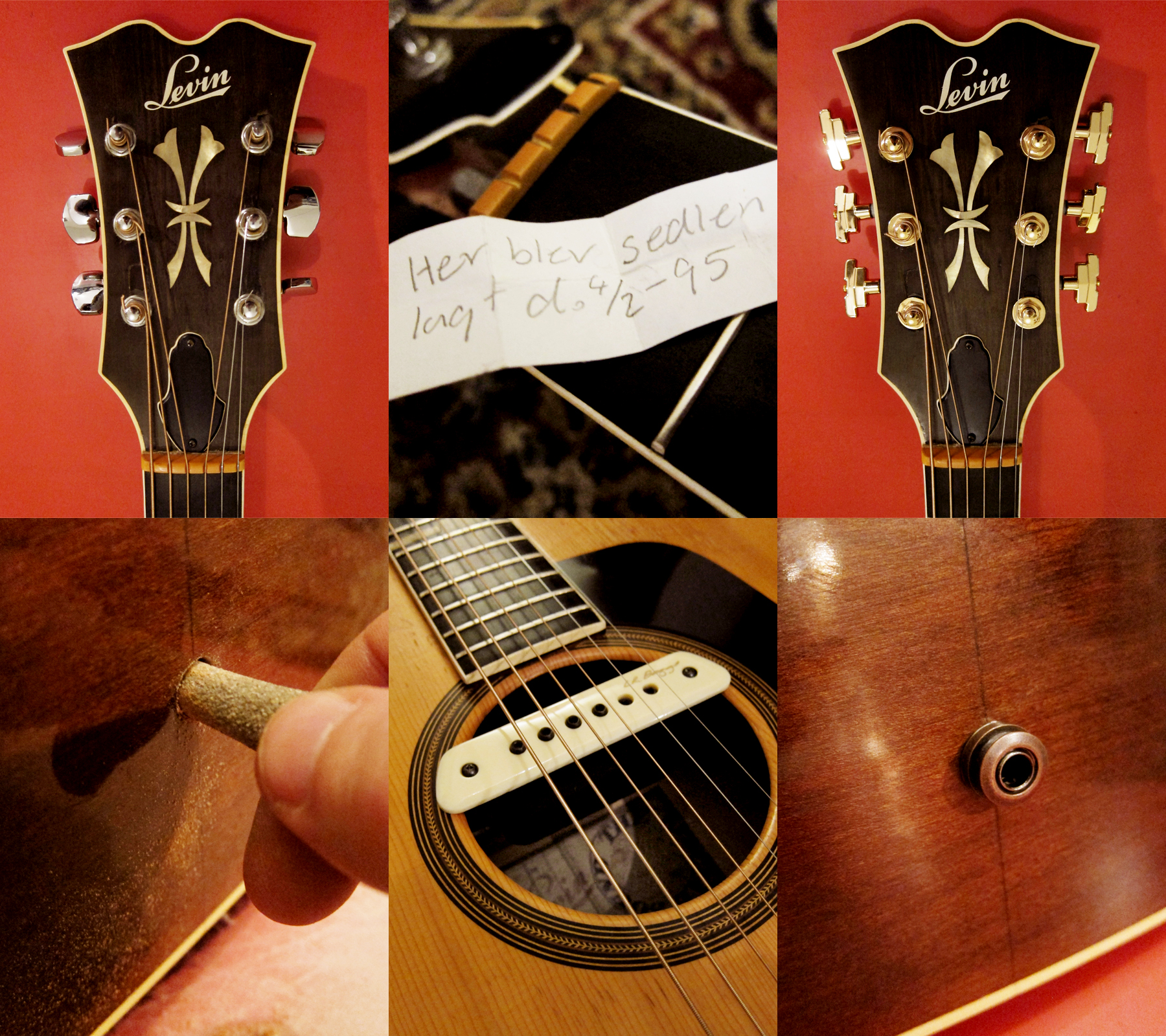 I haven’t done any work to this guitar yet, I bought it from a seller in Franklin, Indiana, USA and since it seemed really dry when it arrived I wanted to wait and see how it reacts to the subtropical heat of Barcelona first. Most likely I will have to sand down the heal a bit to get the action down and perhaps even remove the binding on the neck and file down the frets since the fretboard has been dry and shrunk so the frets are poking out a bit. Hopefully the humidity here will help a bit and if not I will sort this issues after the summer. It’s very playable as it is and almost in mint condition with minimal wear.