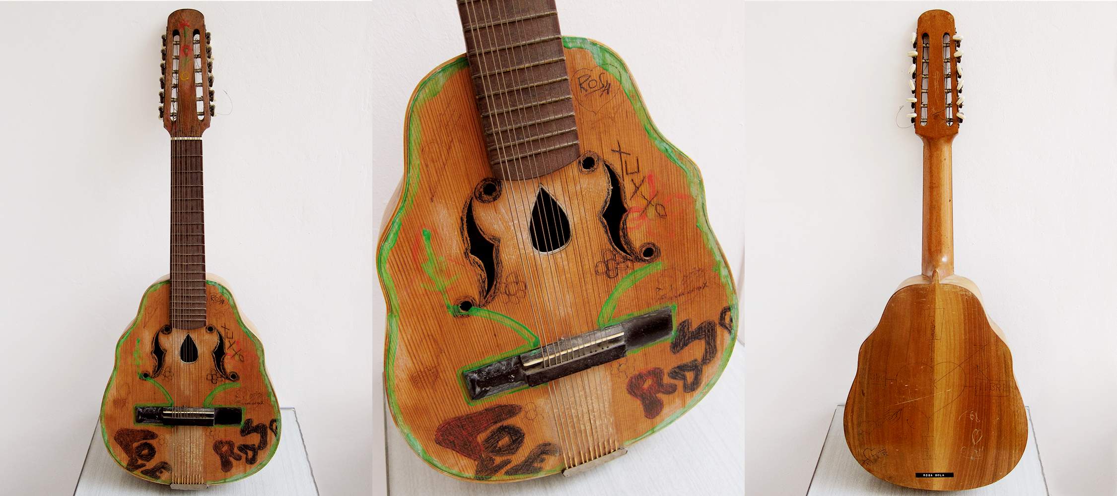 Someone called Rosa Sola had gone crazy bananas, full blown hippie on this poor laúd when we found it