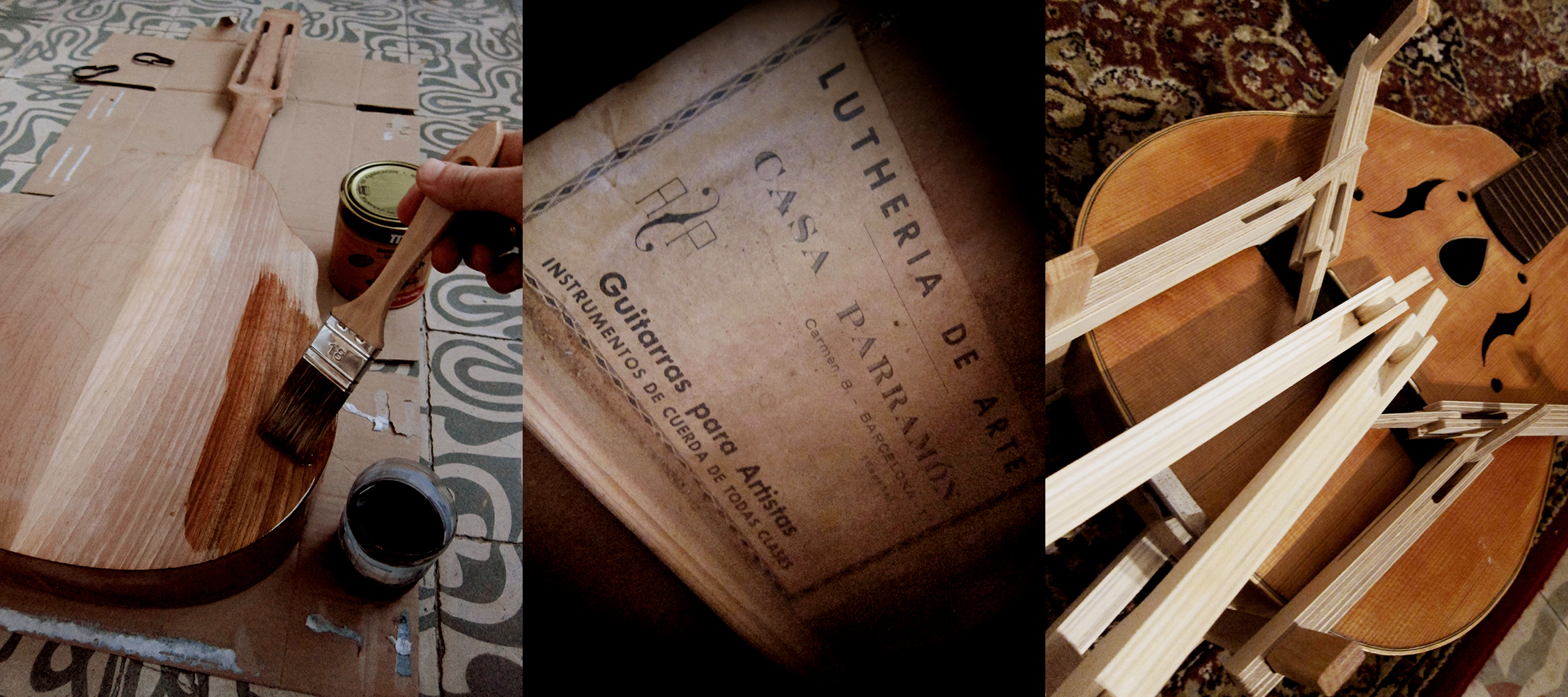 When Araceli and I first moved to Barcelona we found this Laúd in the streets, we took it home, put it in the back of a wardrobe and completely forgot about it for four years. It was so ugly so we couldn’t have it out, on top of that we didn’t even know if it was a laúd, a bandurria or some other weird Spanish instrument. It was therefore tucked away and quickly forgotten. Until recently when Araceli’s dad Marcos mentioned that he wanted to learn to play a new string instrument, or as he put it, I need something new to make noise on. We suddenly remembered that ugly thing with strings on in the wardrobe and I thought that maybe I could restore it for him. I mentioned earlier that we managed to find a really nice Spanish made Alhambra from the late 1970’s that we gave him for Christmas.