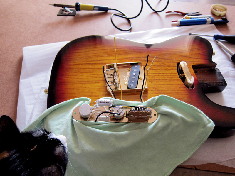 This is a project that could have been done in two days but has taken two years. I guess it’s partly my fault, I wasn’t really sure how to reset a neck so I kept putting it off. I also have a 1.5 years old daughter and she is like a black hole when it comes to making time disappear. Anyway, now it’s done and everything worked out pretty great. I steamed off the necks back in April and then I had a lot of gigs and moved house in the middle and then last week I finally managed to get the guitar back together.